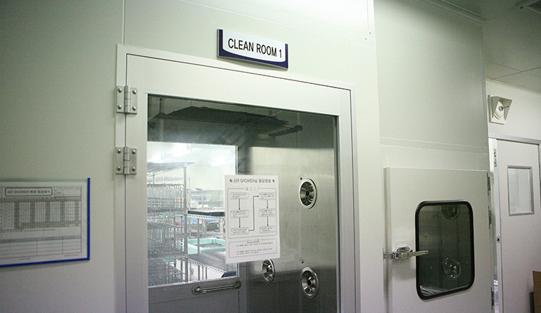 Total 3 clean rooms (for high brightness & Resized LCD panel) Cleanness class 1,000 Clean room control : particle counter, Temp & Humid controller Complete ESD Protection : Conductive floor, Work bench Area 700㎡